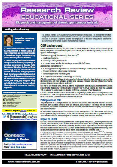 Independent commentary has been provided by Dr Connie Katelaris, a Professor of Immunology & Allergy at the University of Western Sydney and Head of Department and Senior Staff Specialist at Campbelltown Hospital.