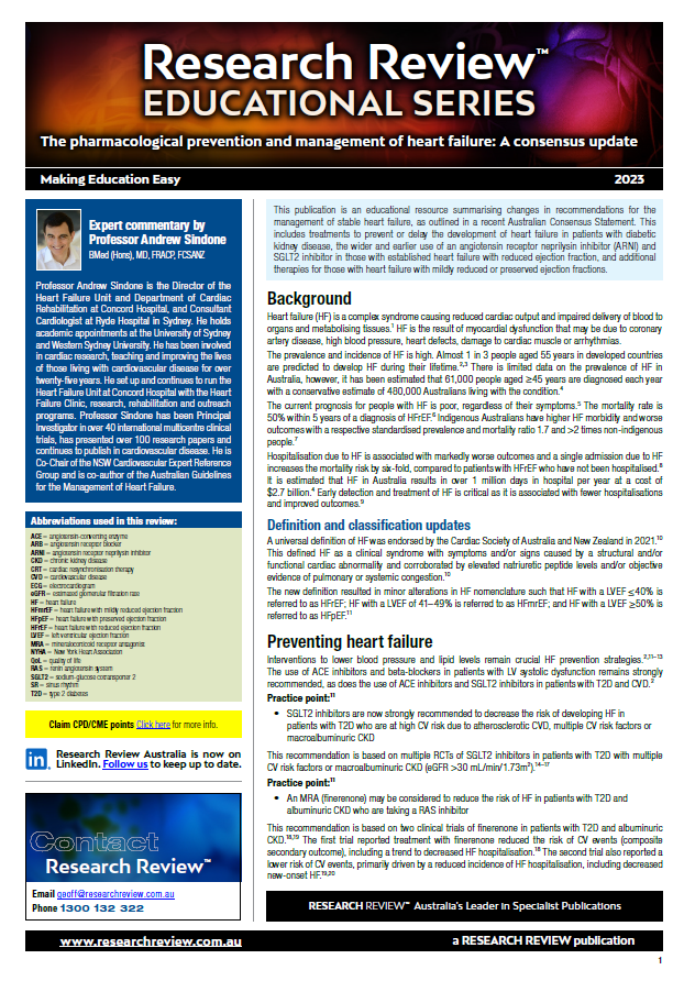 We are delighted to add our latest Educational Series on the pharmacological prevention and management of heart failure: A consensus update. The review covers prevention, treating heart failure with reduced ejection fraction, and treating heart failure with preserved left ventricular ejection fraction.