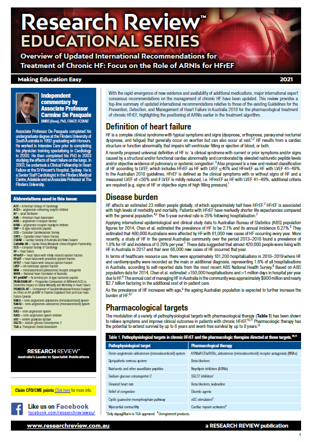 The review includes guiding commentary from Associate Professor Carmine De Pasquale, a Senior Staff Cardiologist in the Flinders Medical Centre, Adelaide and an Associate Professor at The Flinders University.