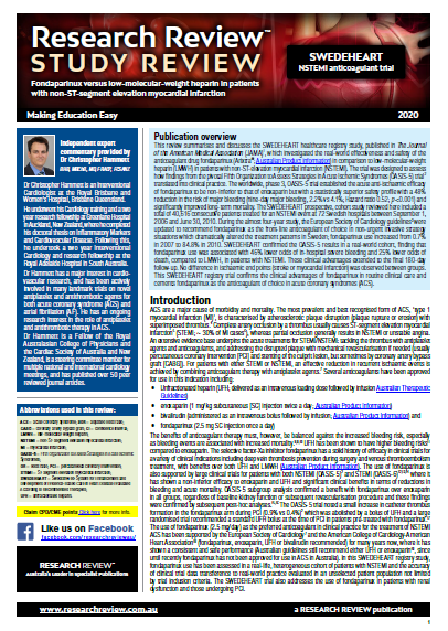 A review of the SWEDEHEART NSTEMI anticoagulant trial - Fondaparinux versus low-molecular-weight heparin in patients with non-ST-segment elevation myocardial infarction.