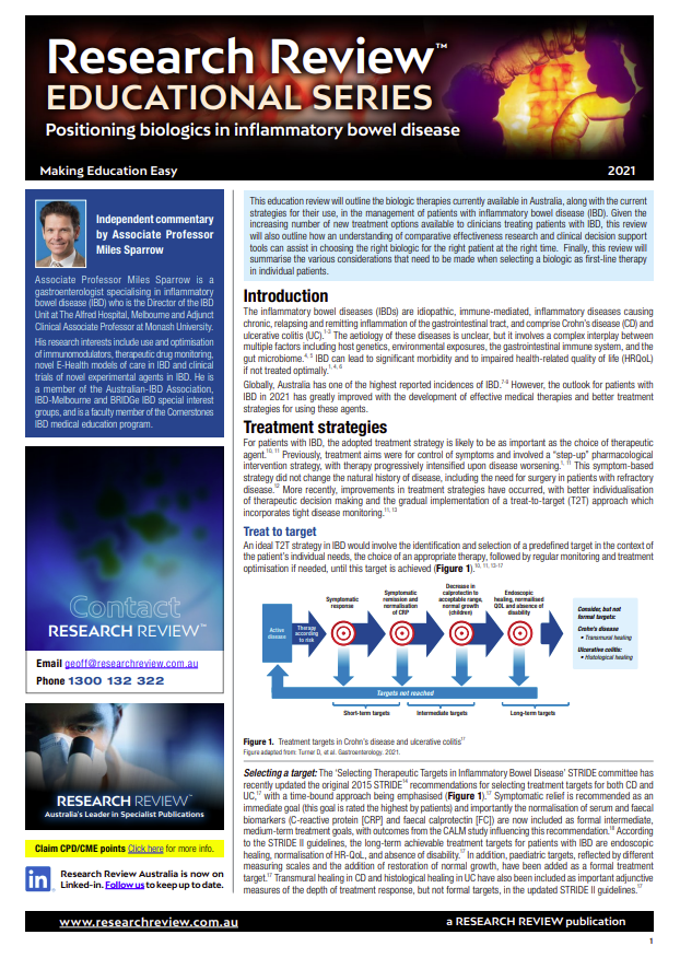 The review includes guiding commentary from a panel of doctors lead by Professor Rupert Leong, Senior Staff Specialist, Director of Endoscopy, Head of IBD Services, Concord Hospital, Professor of Medicine, University of Sydney, Sydney Australia.