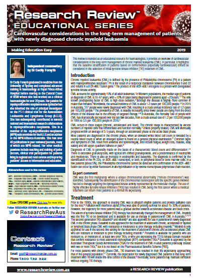 This Educational Series provides an overview of cardiovascular considerations in the long-term management of chronic myeloid leukaemia (CML). In particular, it highlights that the baseline stratification of patients based on comorbidities (especially cardiovascular) should be considered in the selection of initial tyrosine kinase inhibitor (TKI) treatment in CML.