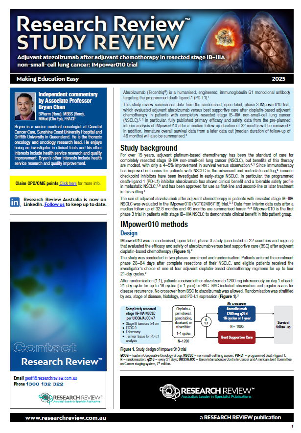 Study Review – Adjuvant atezolizumab after adjuvant chemotherapy in resected stage IB–IIIA non-small
