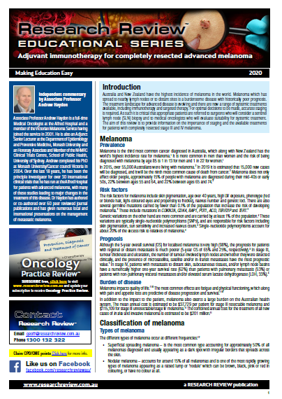 The review includes guiding commentary from Associate Professor Andrew Haydon, a full-time Medical Oncologist at the Alfred Hospital and a member of the Victorian Melanoma Service.