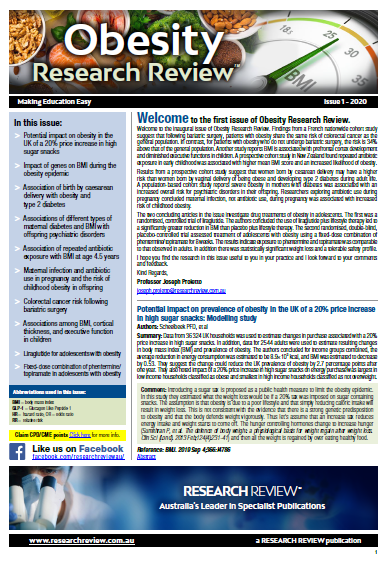 Professor Joseph Proietto. The Review covers topics such as bariatric surgery, BMI, cardiac and cancer risk, and maternal risk factors.