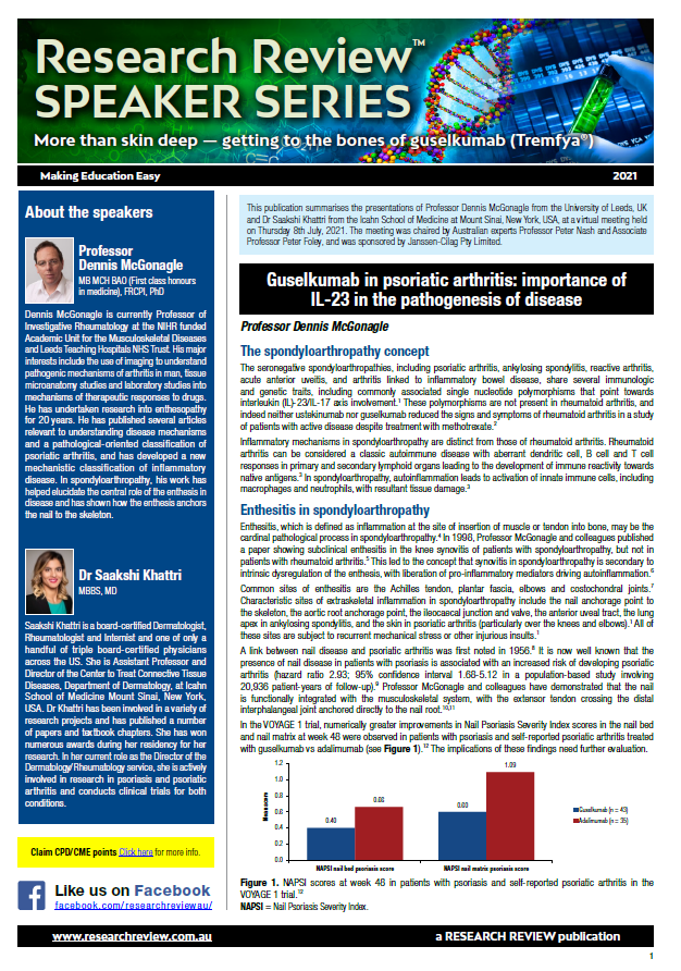 The presentation was given by Professor Dennis McGonagle from the University of Leeds, UK and Dr Saakshi Khattri from the Icahn School of Medicine at Mount Sinai, New York, USA, at a virtual meeting.