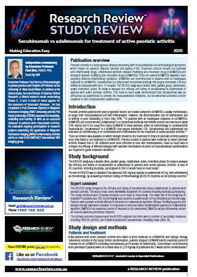 Independent expert commentary is provided by Professor Paul Bird, a Rheumatologist in private practice and a Conjoint Professor at the University of New South Wales.