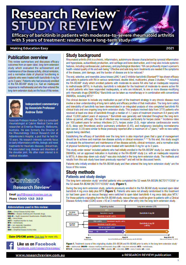 Study Review - 3-year study of baricitinib efficacy in rheumatoid arthritis