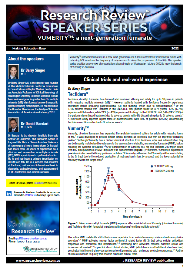 We’re delighted to add a summary of a recent speaker event on diroximel fumarate, a new, next-generation oral fumarate treatment indicated for adults with relapsing MS to reduce the frequency of relapses and to delay the progression of disability.