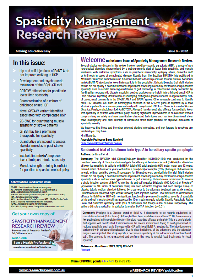 View back issues of Spasticity Management Research Review publications here. Also below are reviews of recent international medical conferences, new medicines, speaker events and other relevant publications.