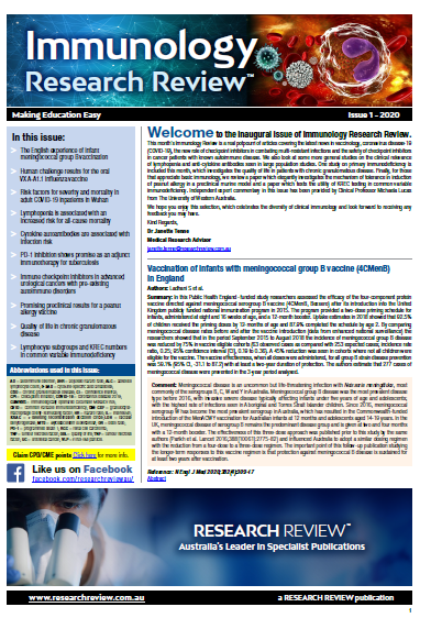 Professor Michaela Lucas and Dr David Nolan. The Review covers topics such as vaccines, immunotherapy, COVID-19, immune checkpoint inhibitors, autoimmune disorders and immunodeficiency.