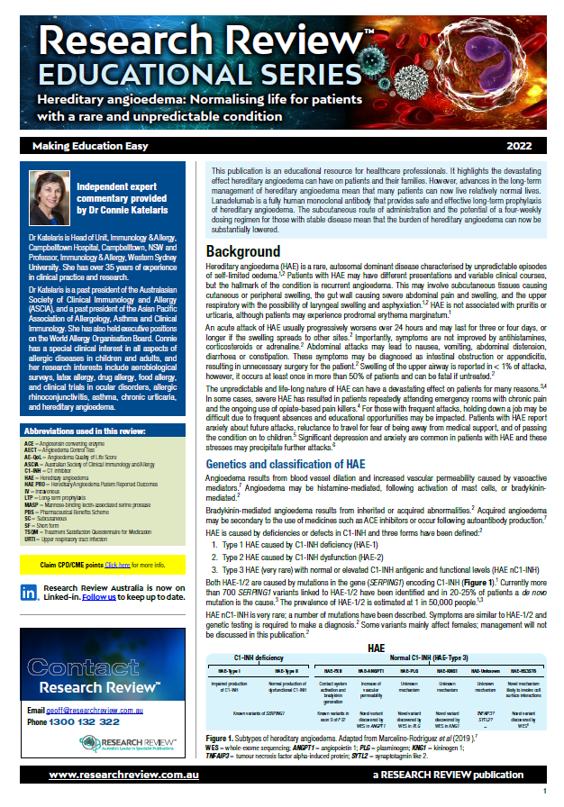 The review includes guiding commentary from Dr Connie Katelaris, Head of Unit, Immunology & Allergy, Campbelltown Hospital, Campbelltown, NSW and Professor, Immunology & Allergy, Western Sydney University.