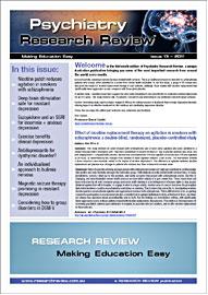 This Review features key medical articles from global psychiatry journals with commentary from Professors Nicholas Alexander Keks and Stephen Touyz. The Review covers topics such as neuropsychiatry, schizophrenia, antipsychotics depression, ADHD and SSRI's.