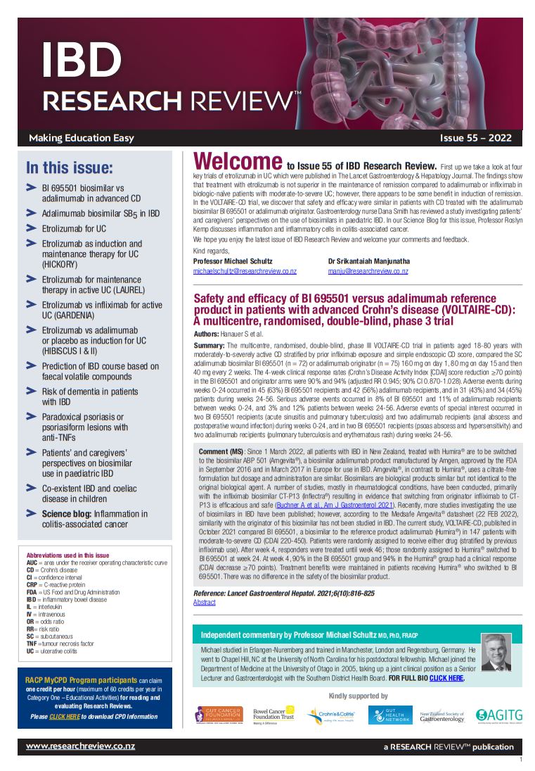 This Review features key medical articles from global gastroenterology journals with commentary from Professor Michael Schultz, Dr Srikantaiah Manjunatha, Dr Anthony Brownson, Professor Roslyn Kemp, Registered Nurse Dana Smith, Nurse Practitioner Christine Ho and Dr Laura Hollingsworth.