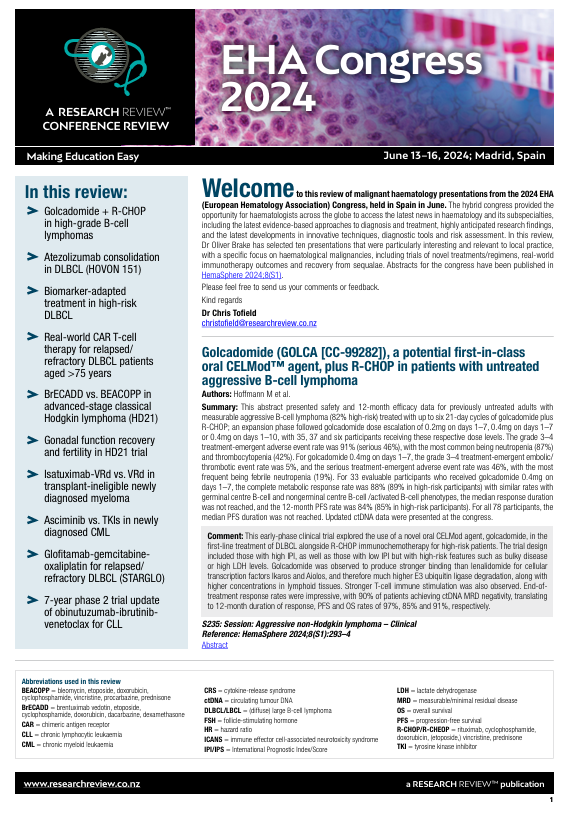 - Golcadomide + R-CHOP in high-grade B-cell lymphomas