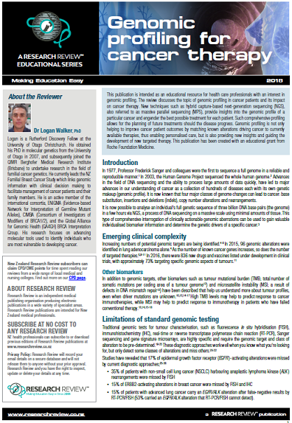 genomic profiling. The review discusses the topic of genomic profiling in cancer patients and its impact