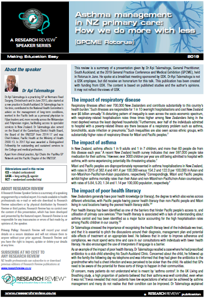 Speaker Series: Asthma management in NZ primary care: